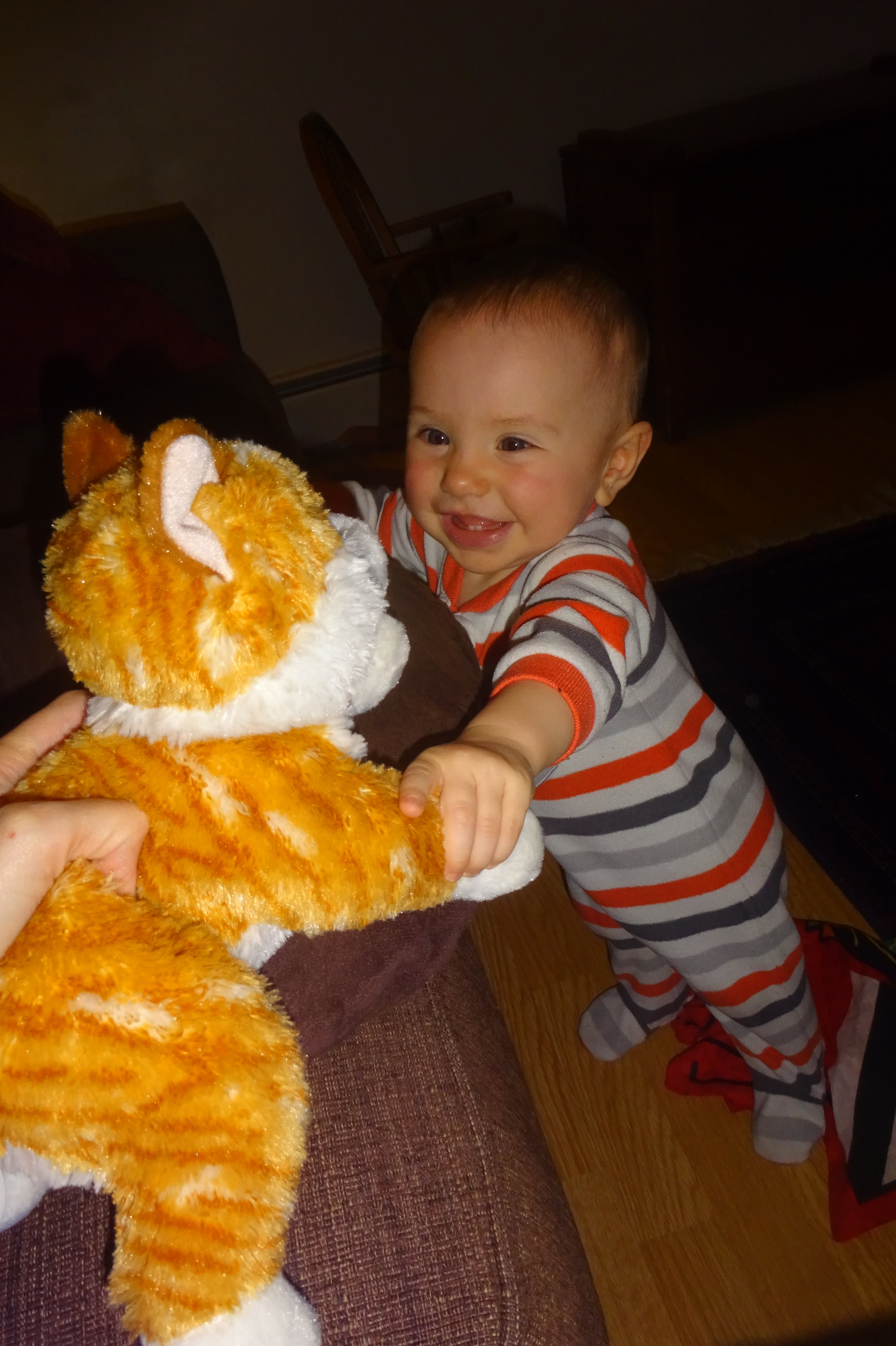 Taking Steps Down the Sofa to Get Her Kitty.JPG