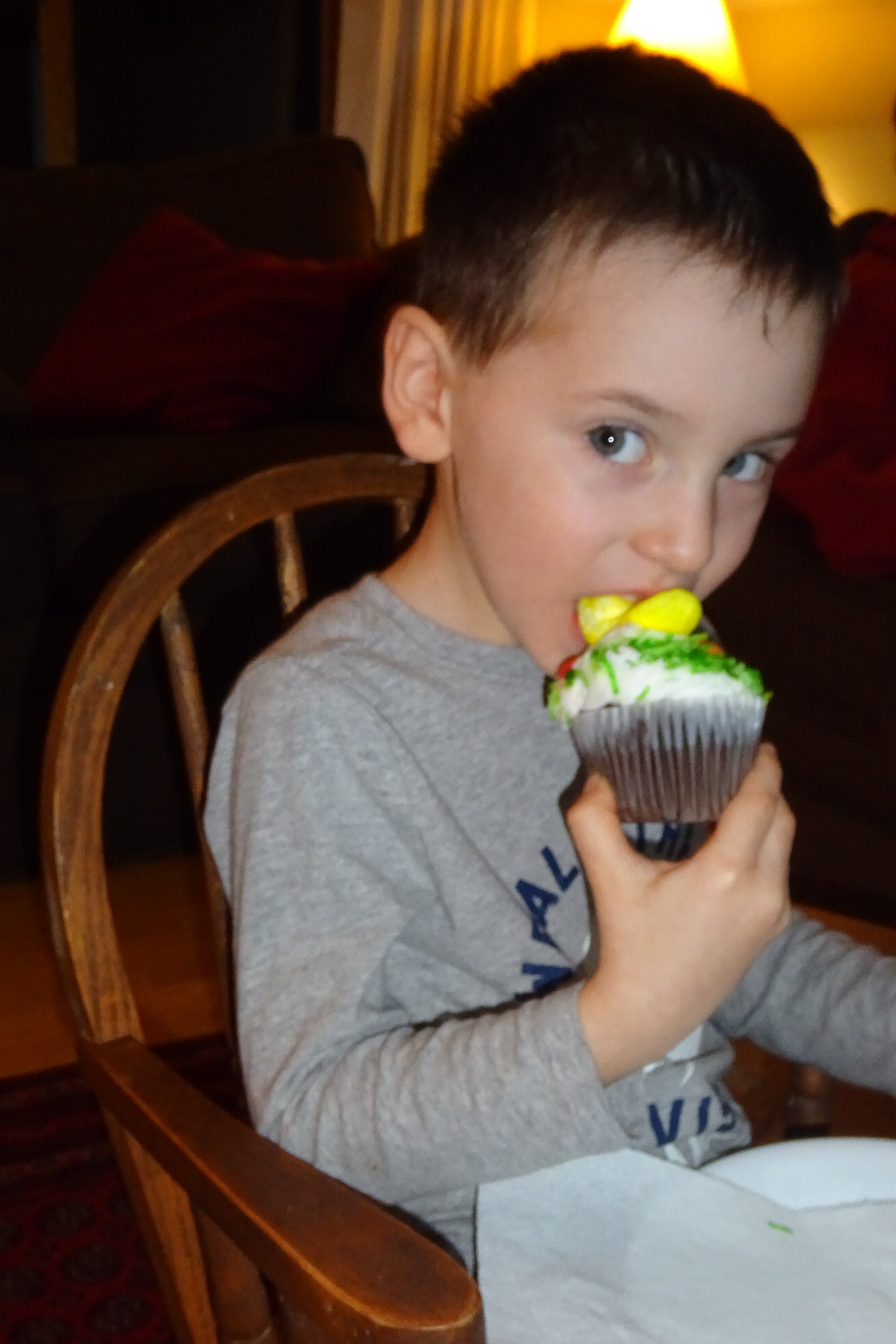 Tasting His First Peep.JPG
