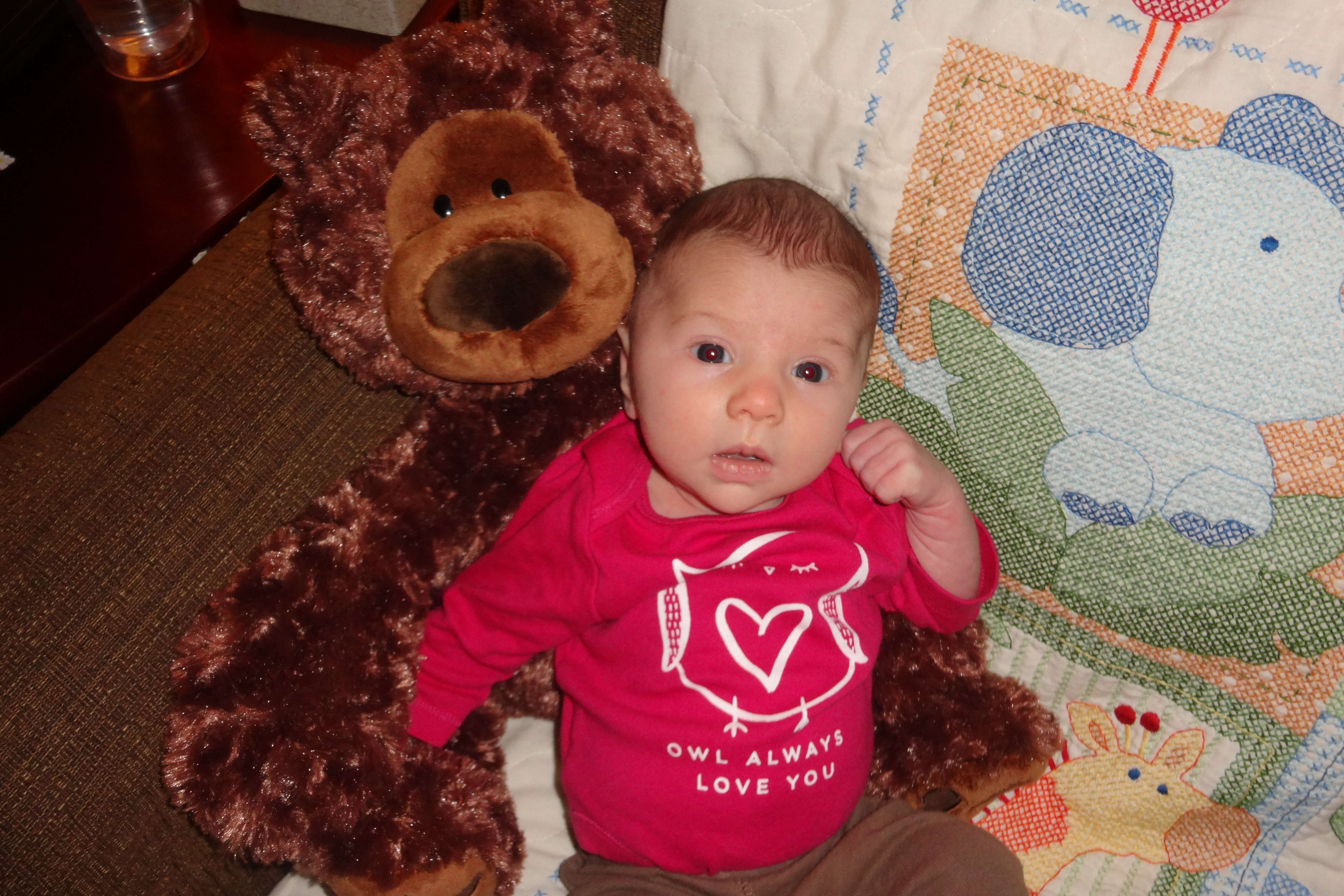 One Month Old with Her Bear.JPG