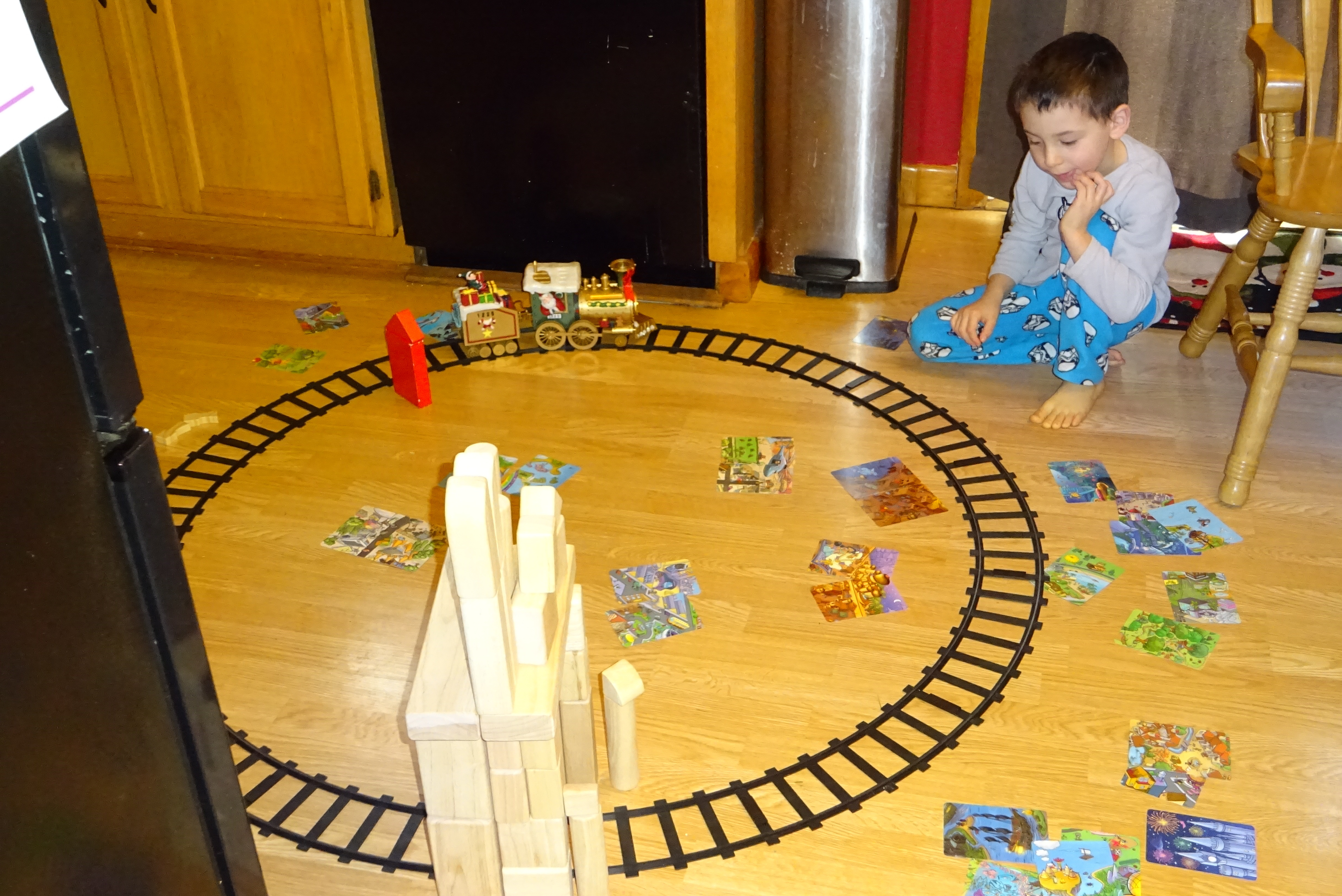 Playing Cards While His Train Runs.JPG