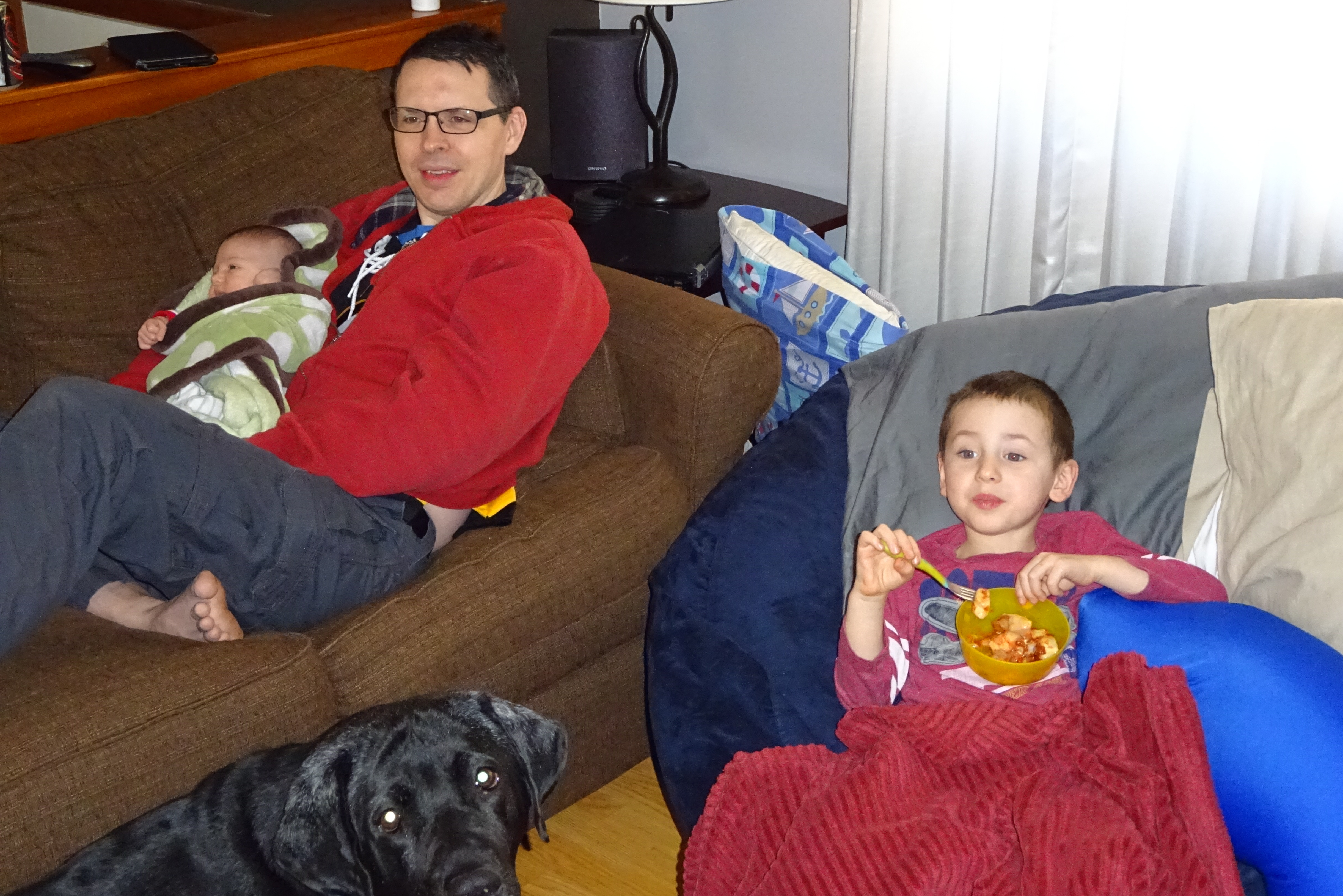 Watching the Bruins With His Kids.JPG