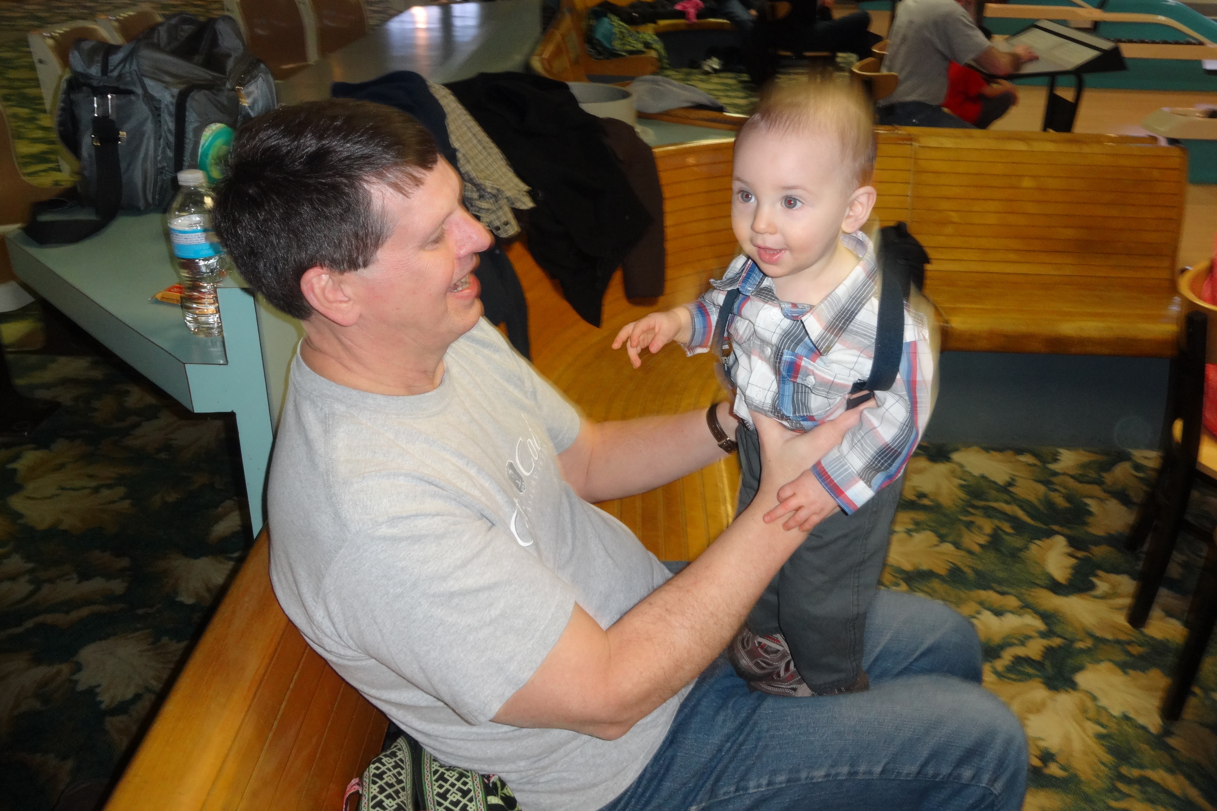 Bouncing on Grandpa at Candlepin