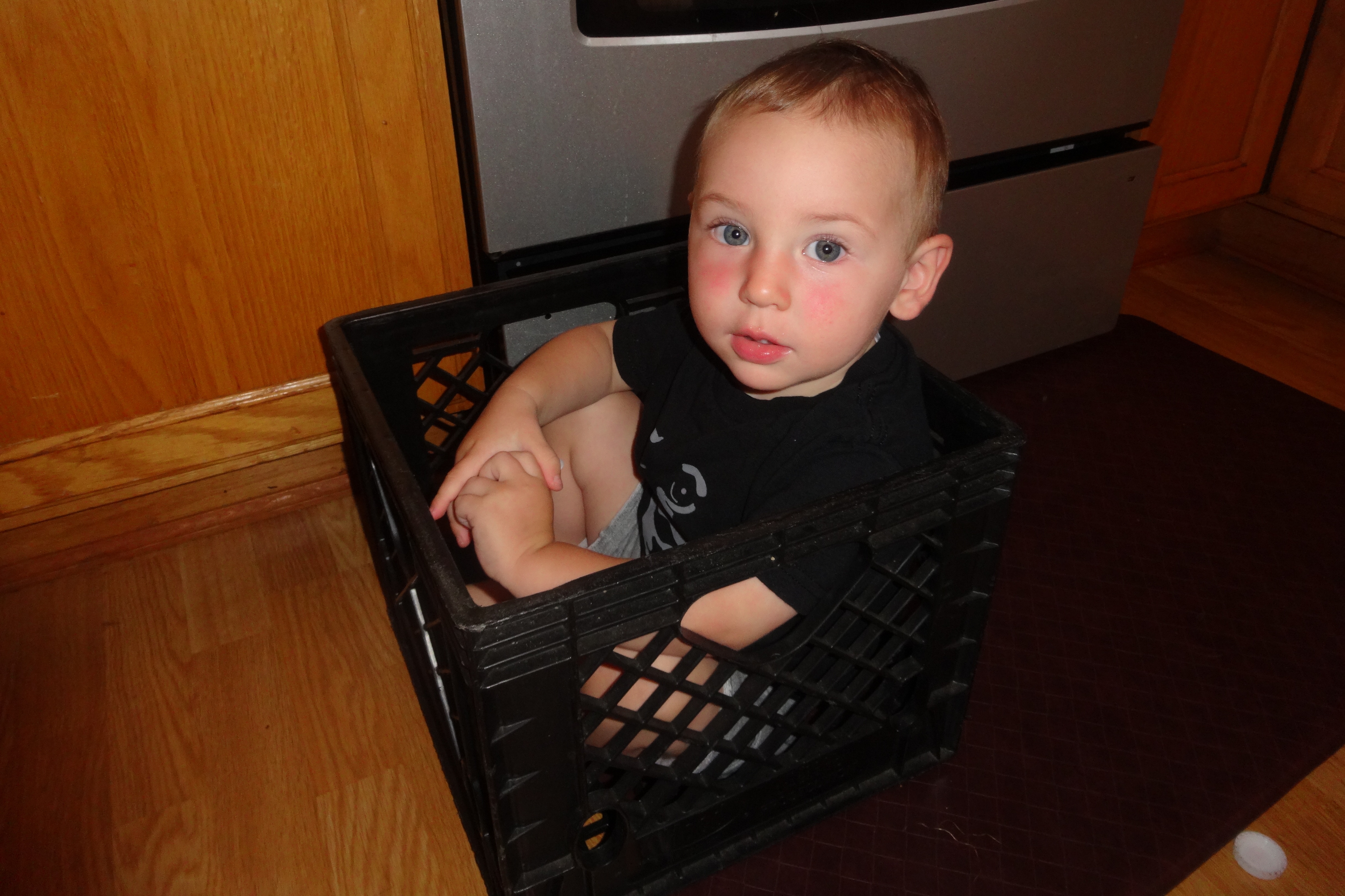 Spending His Morning in the Milk Crate.JPG