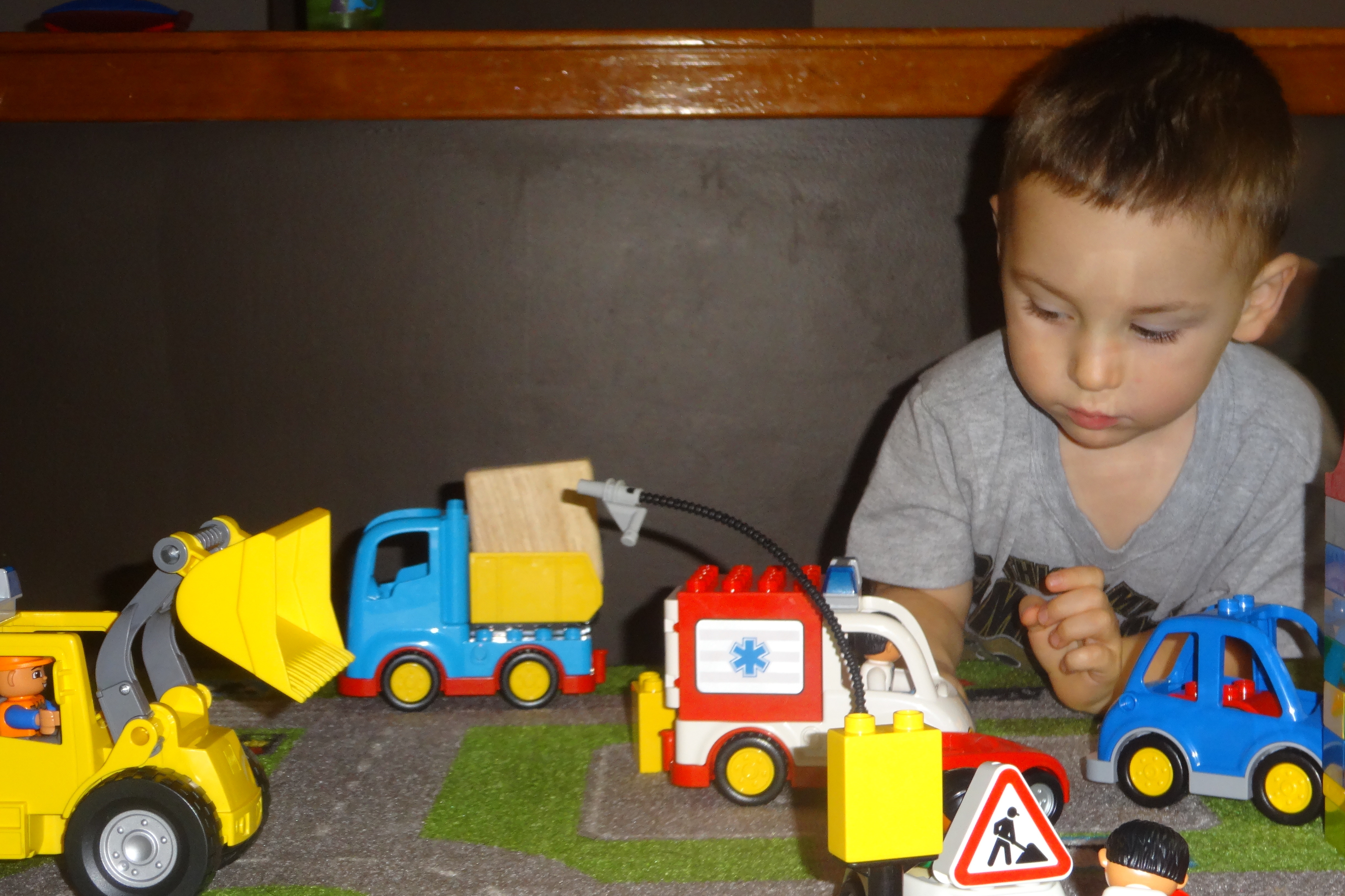 Very Serious Moving His Duplo Cars.JPG