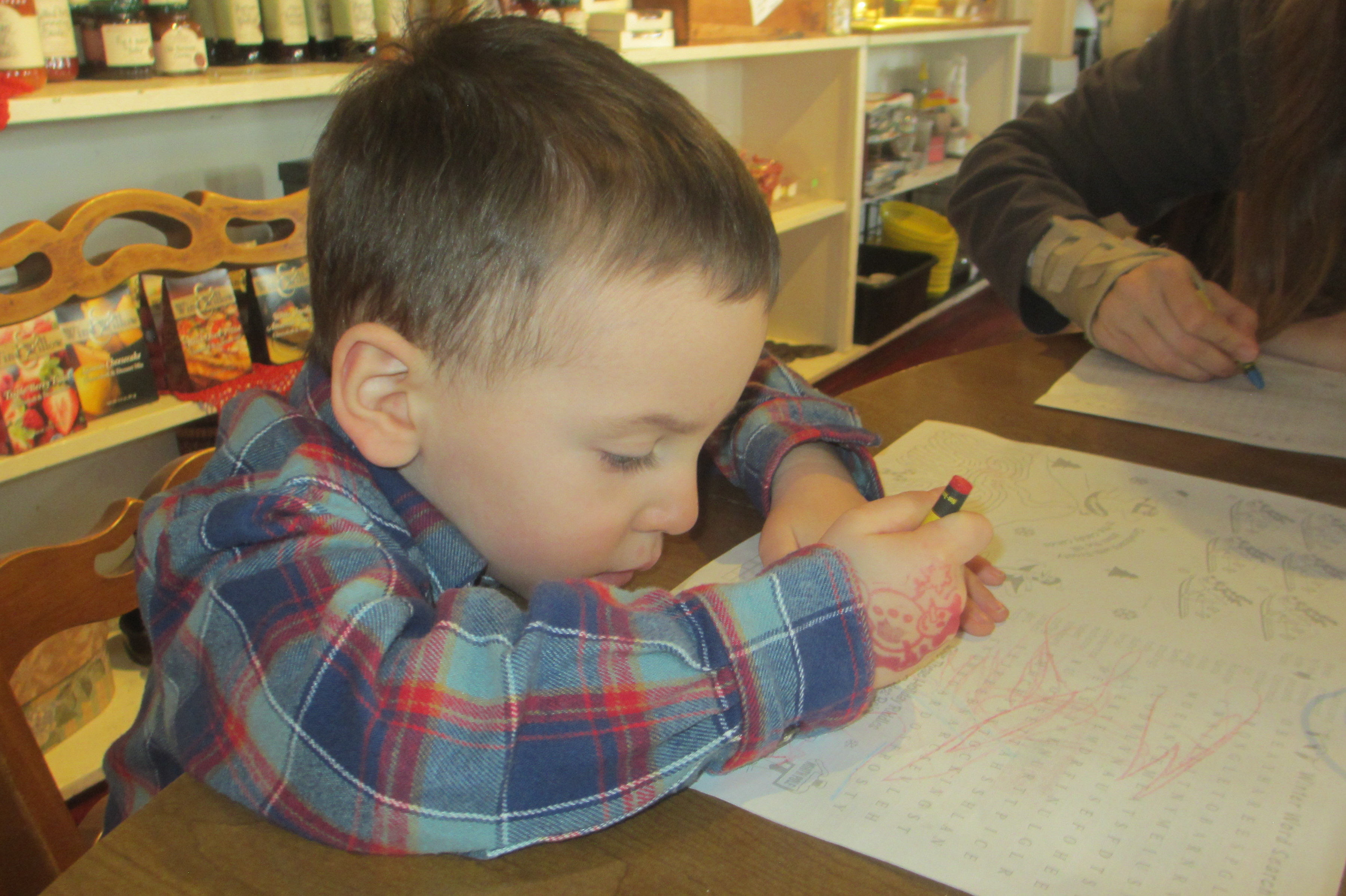 Writing His Name at the Restaurant.JPG