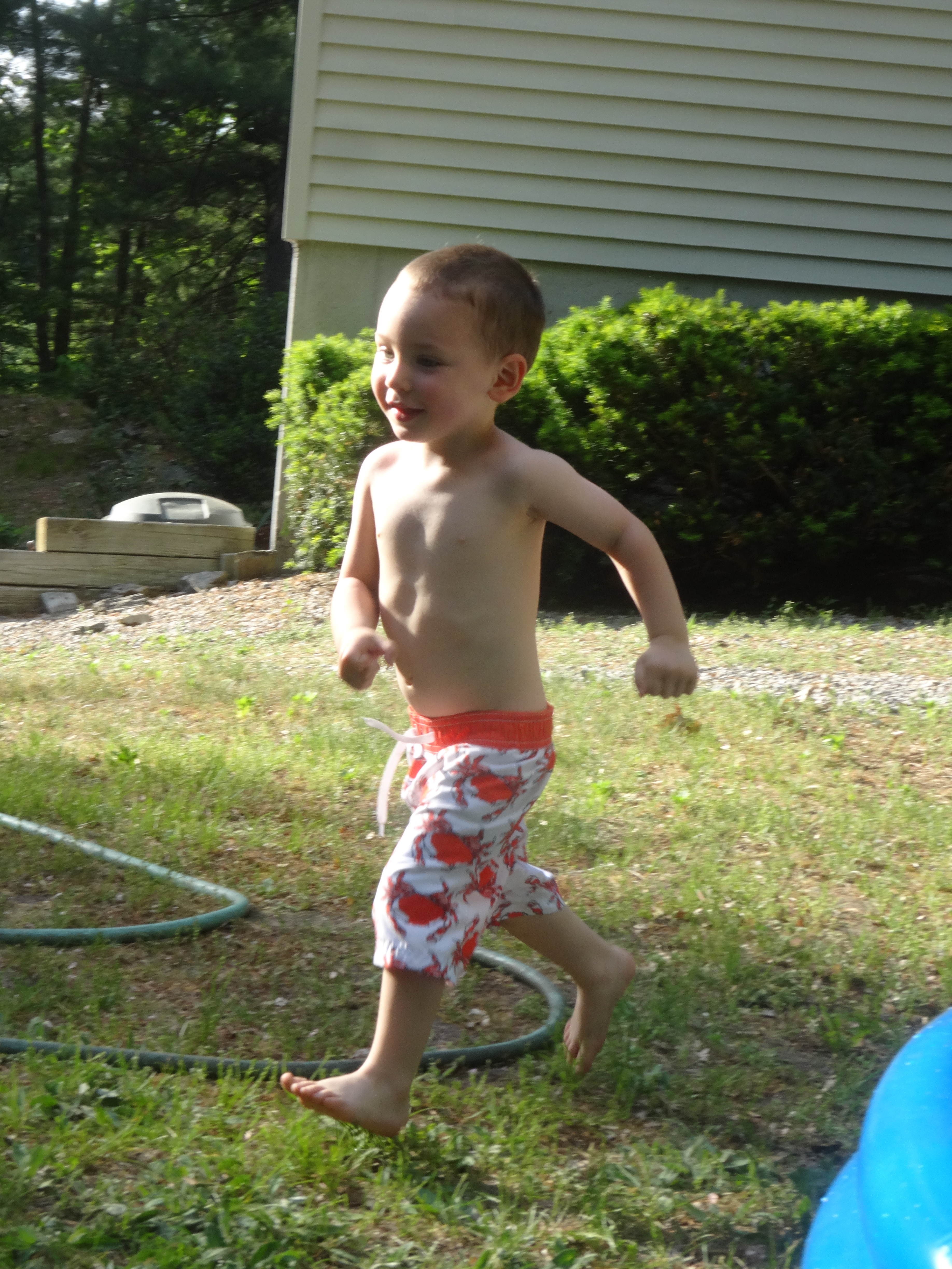 Running Around the Yard In His Swimsuit.JPG
