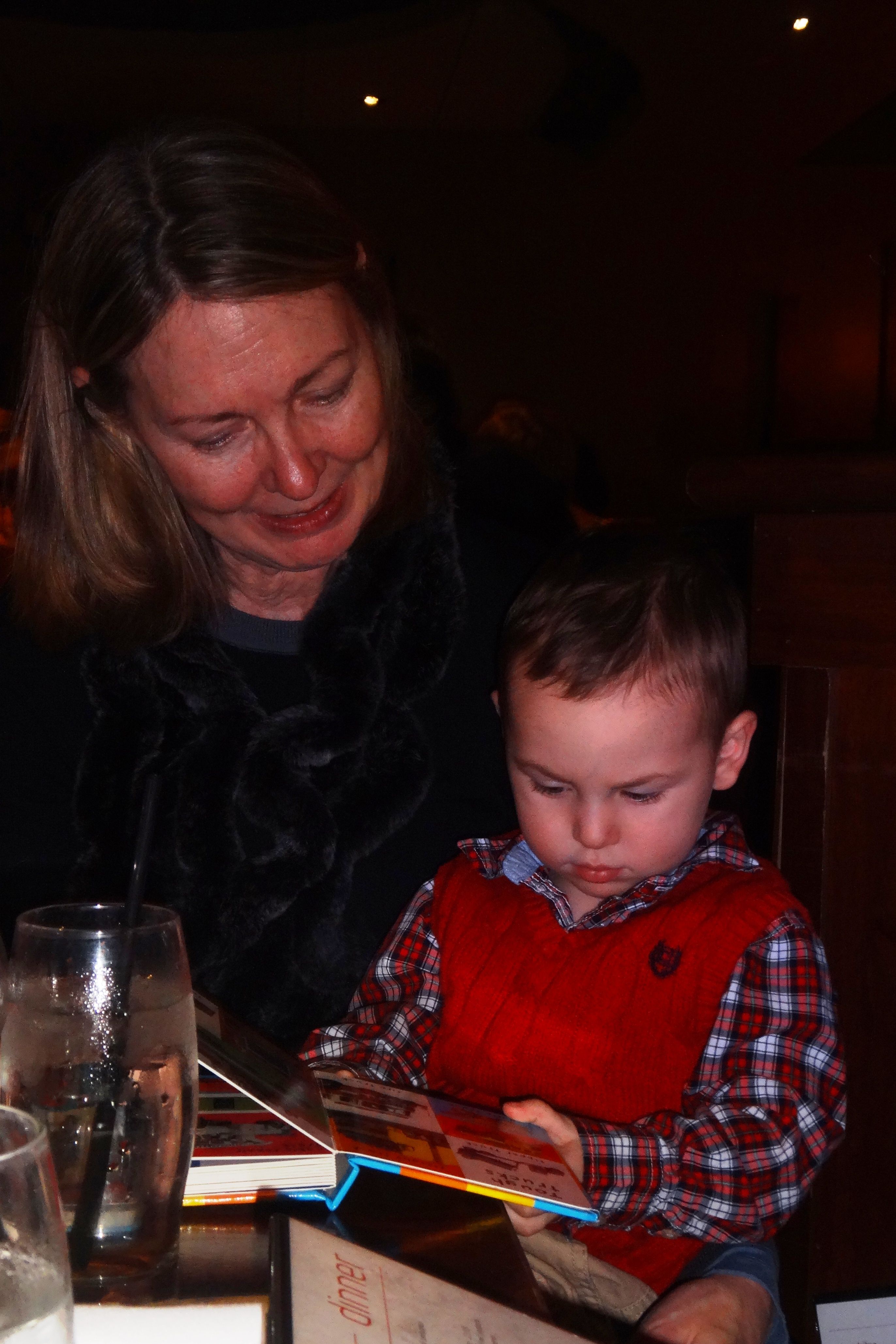 Showing Aunt Laurie His Truck Book