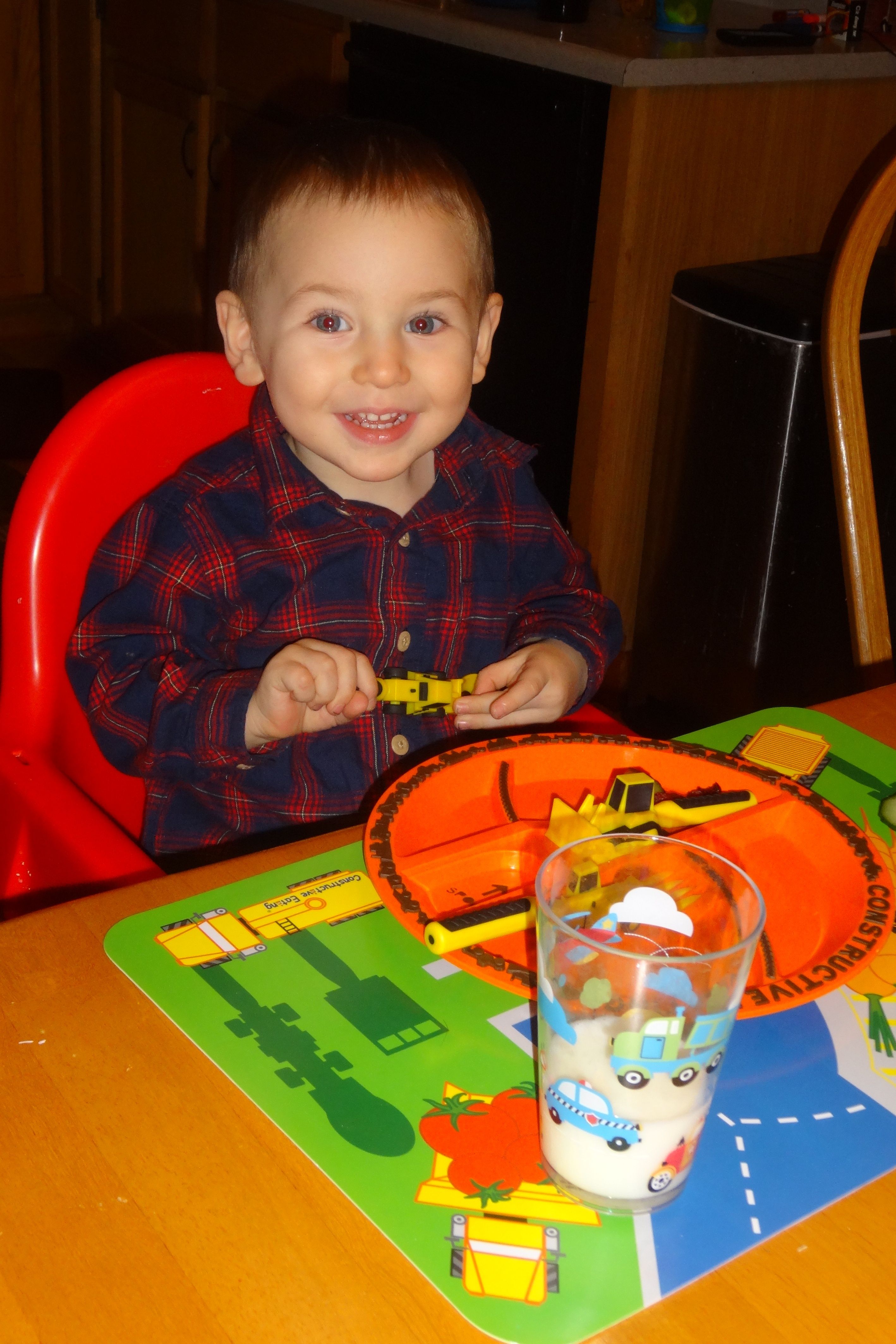 Smiling With His New Dinner Plate.JPG