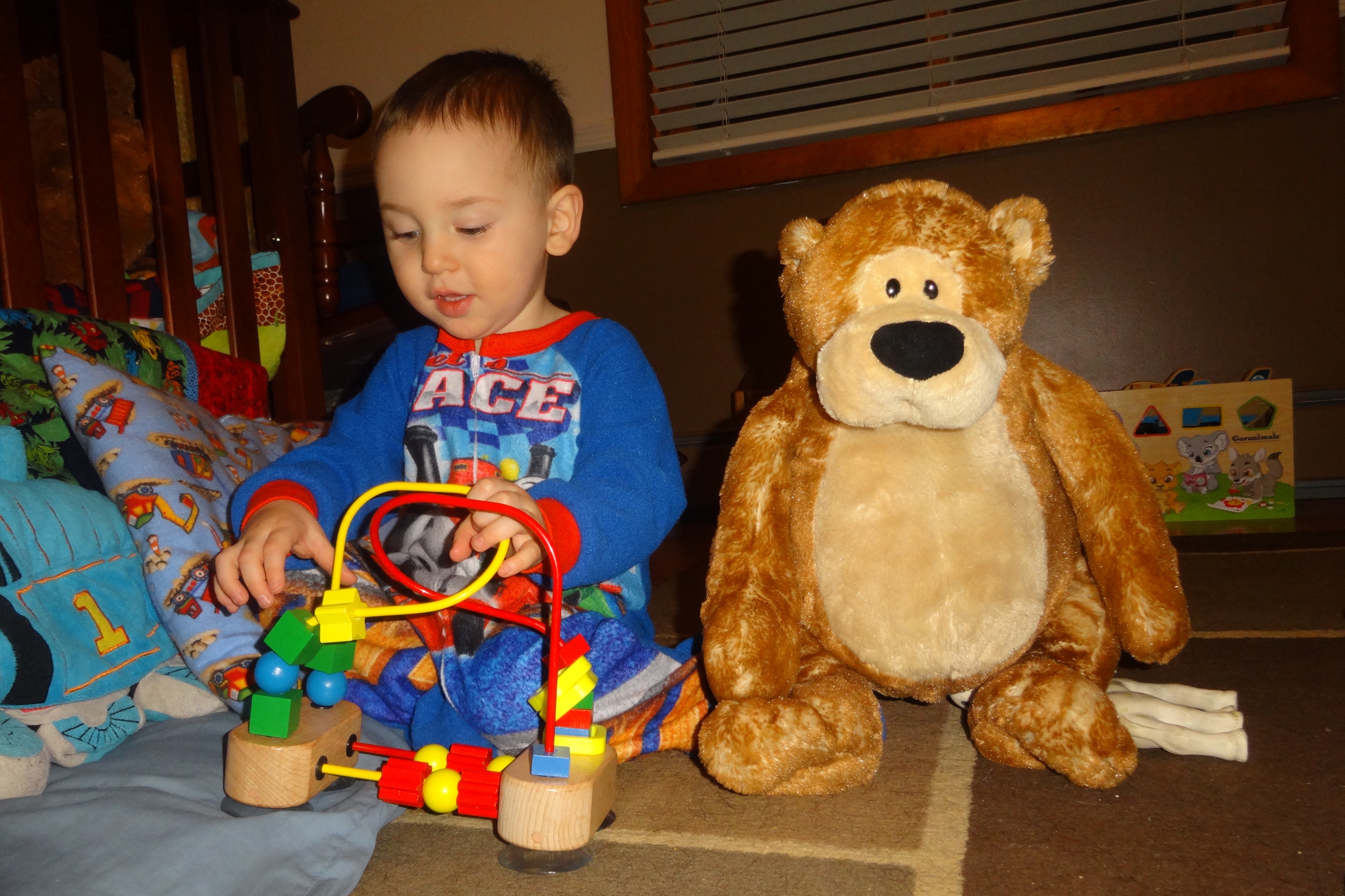 Teaching Bear to Play with Beads.JPG