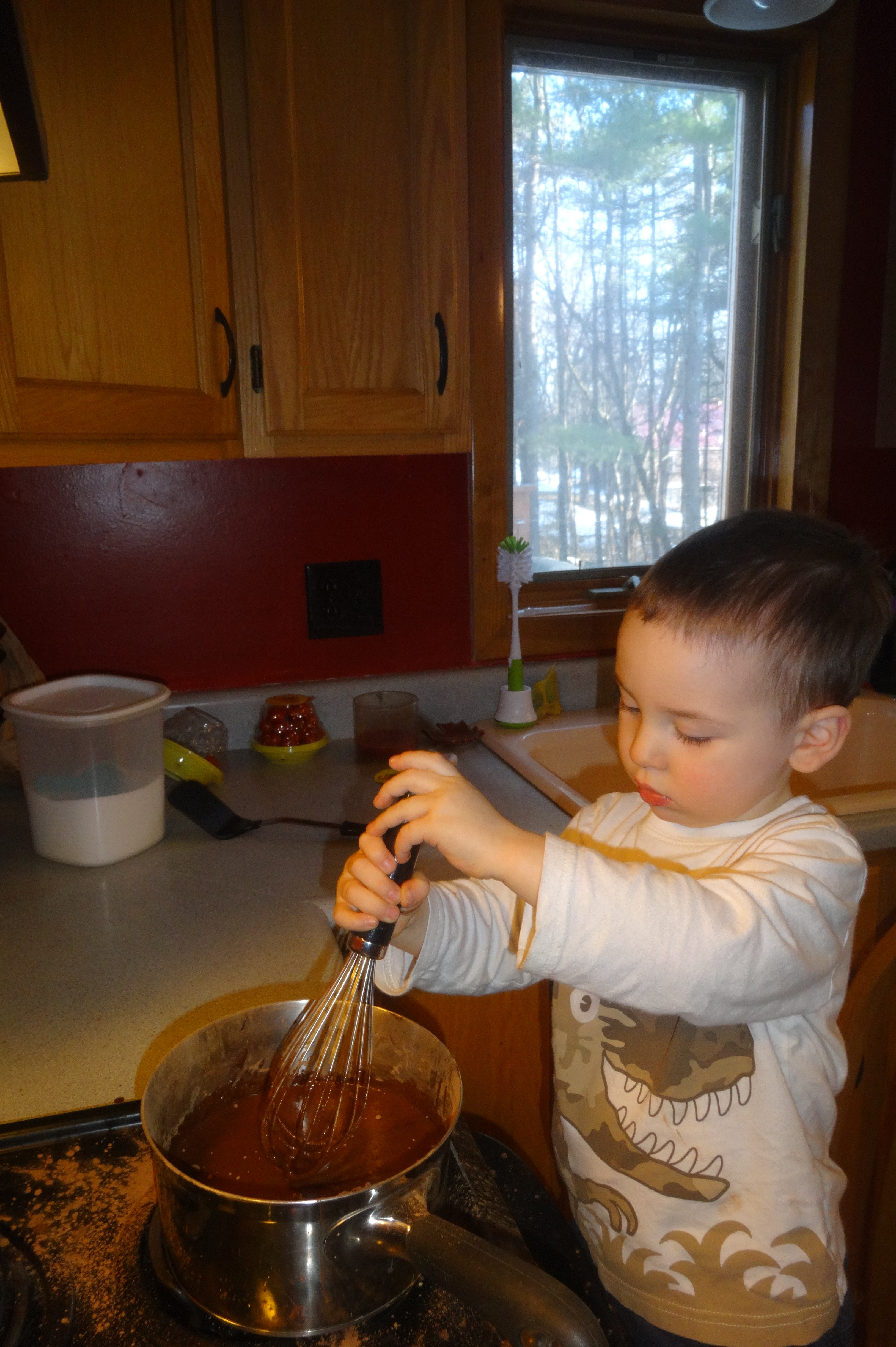 Whisking the Chocolate Iciing