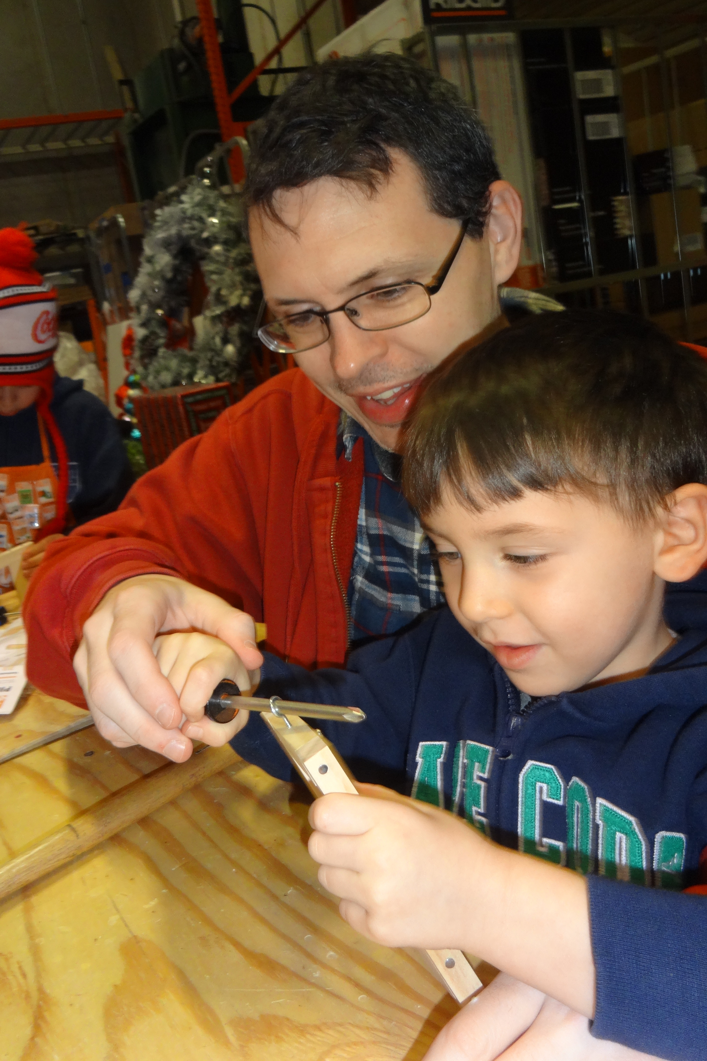 Daddy Teaching Him a Trick for Screwing in HIs Ornament Topper.JPG