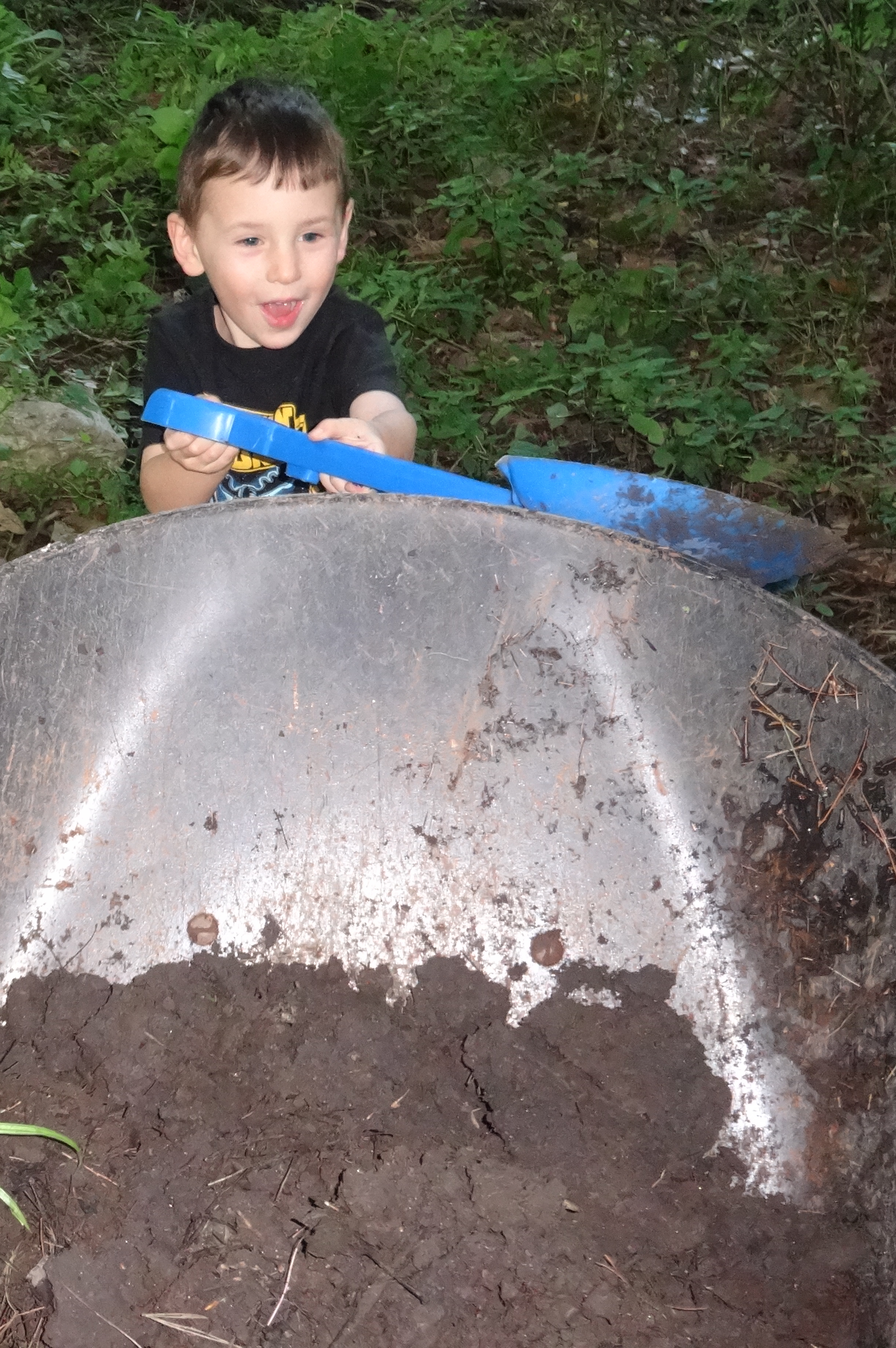 Flinging Dirt Into the Wheelbarrel.JPG