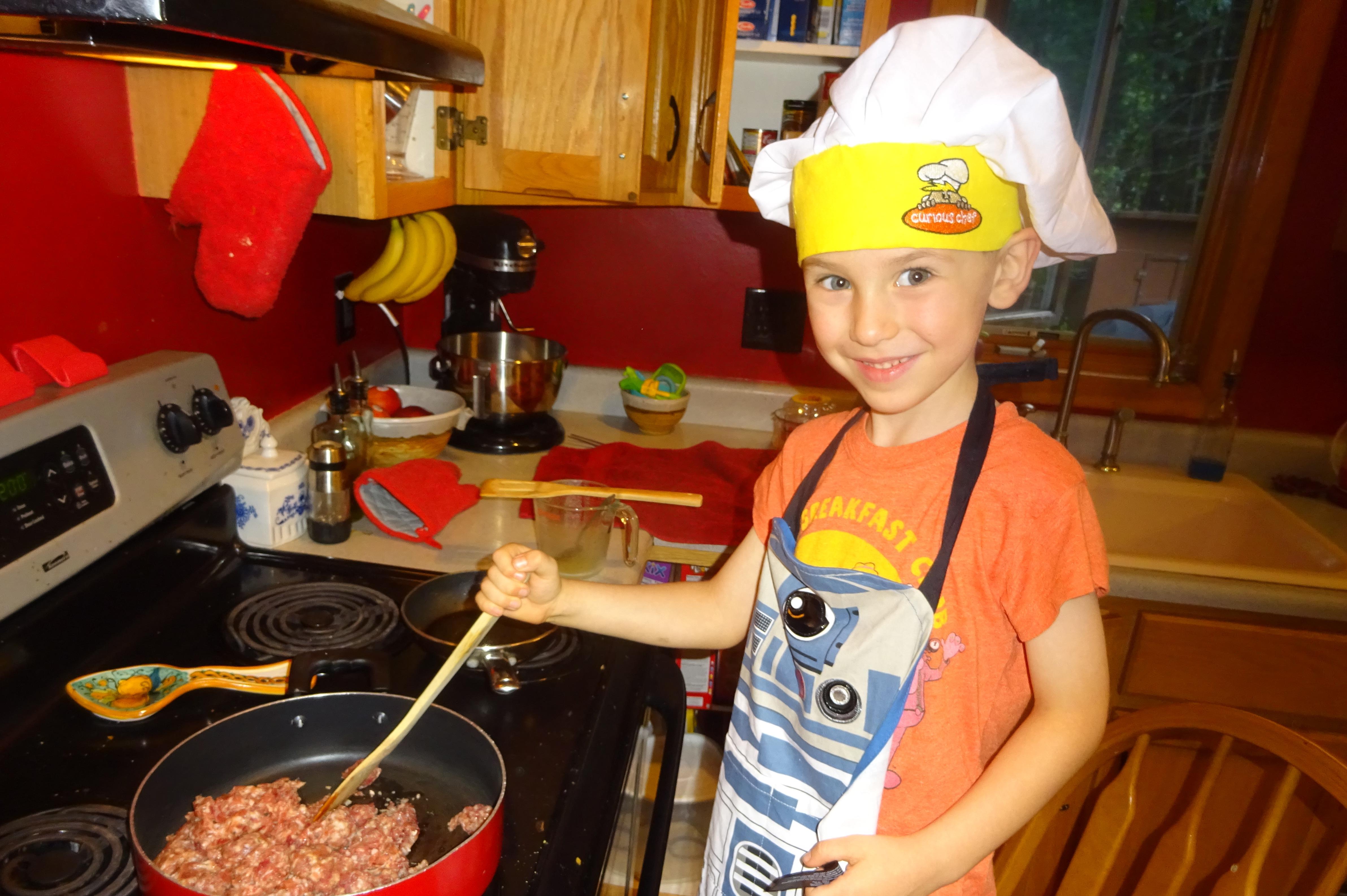 Happy to Help Cook the Sausage.JPG